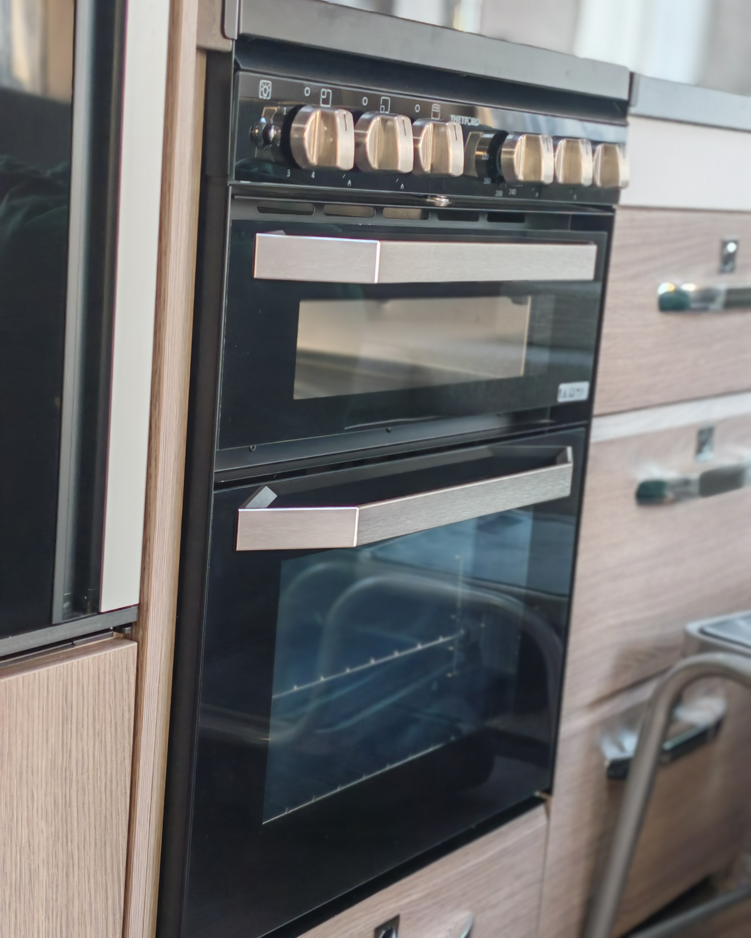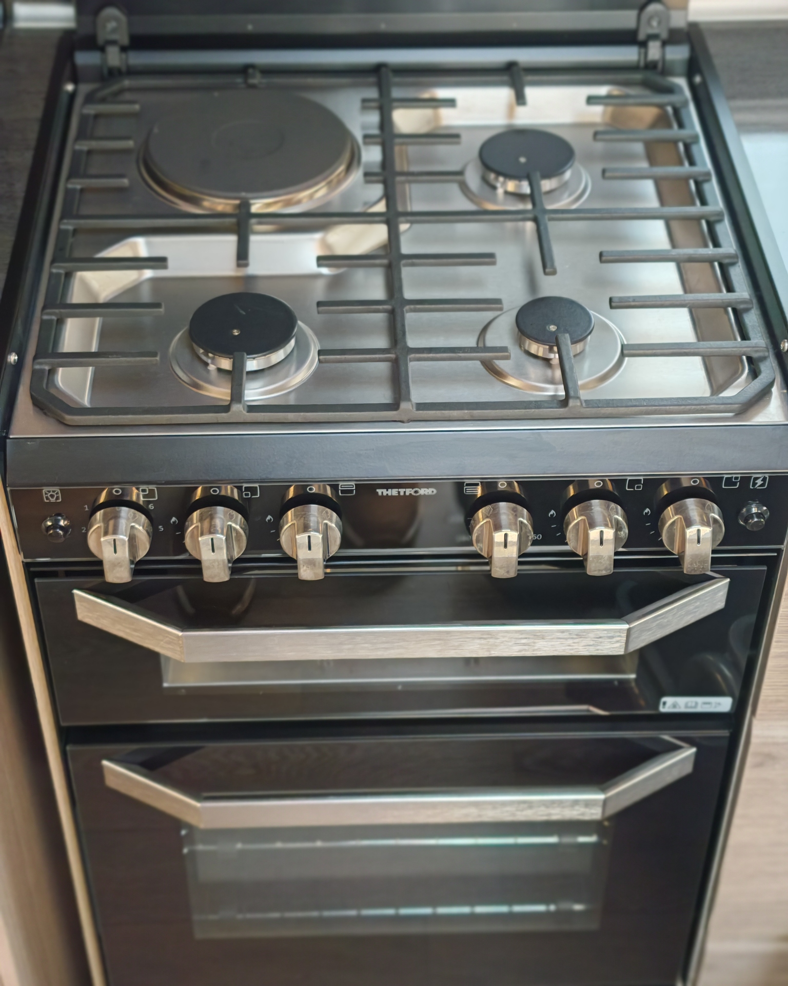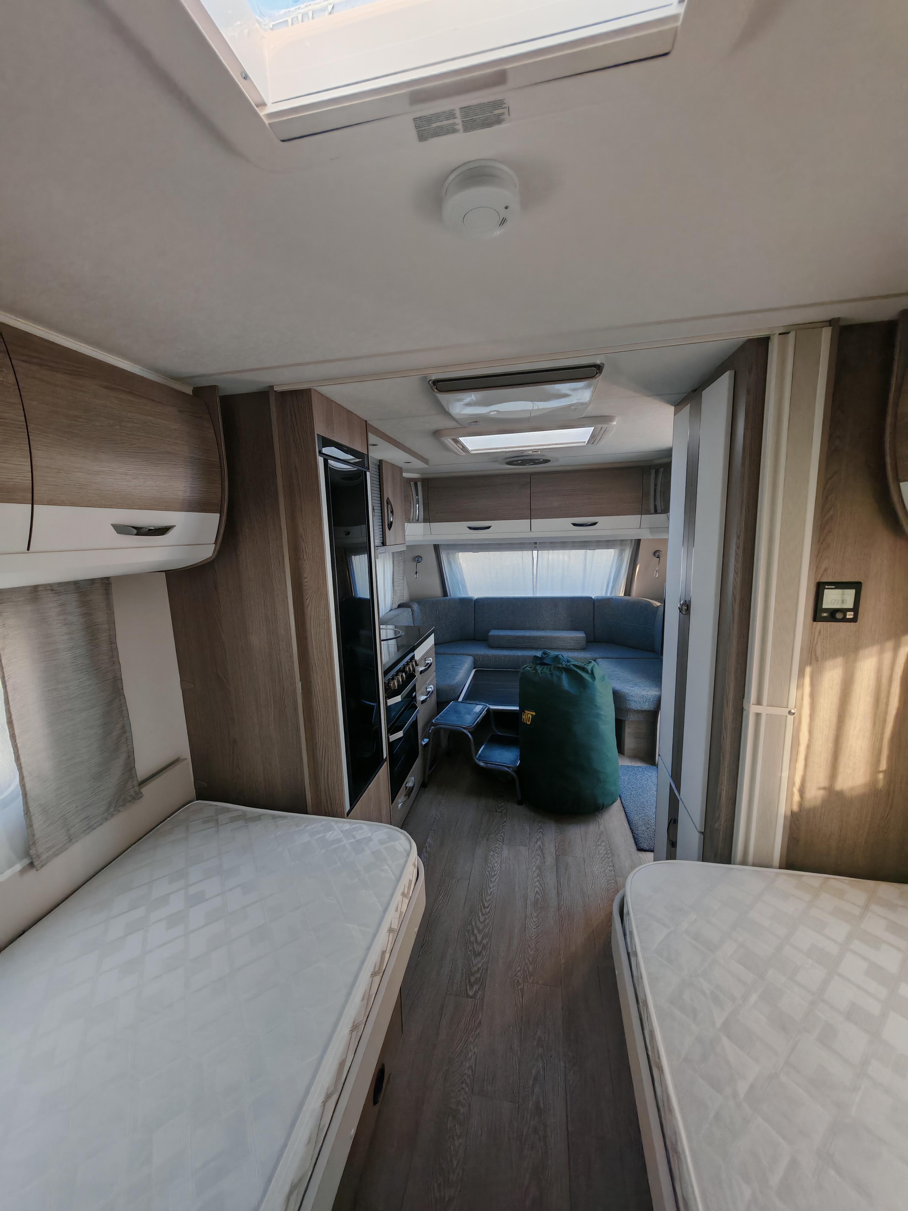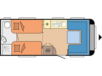 Fekvőhelyek száma: 4 fő, mosogató, toronyhűtő, 3 égőfejes tűzhely, Thetford sütő, mosdófülke beépített bio-Wc-vel és zuhanytálcával, hideg-meleg vízrendszer, beépített víztartály, szennyvíztartály, panoráma tetőablak, kombirolók, Truma INet központ, gázriasztó, térelválasztó, gardróbszekrény, olvasólámpa, Sinclair tetőklíma, TV, padlófűtés, Truma Combi gáz-elektromos kazán
