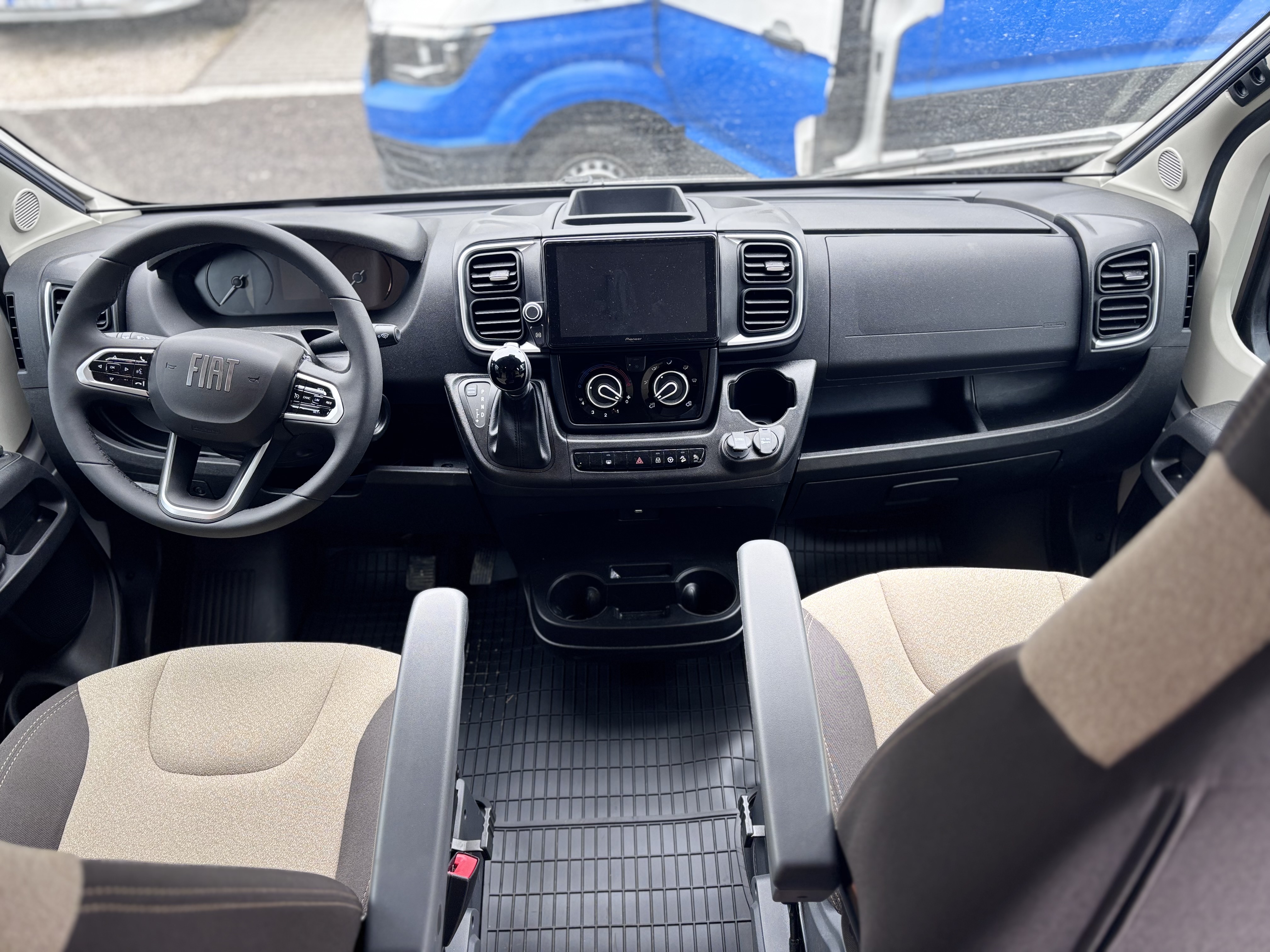 Fiat Ducato 3500 kg, 2,2 l, 140 LE, EURO 6 diesel motor, 8 sebességes automata váltó, 60 L-es üzemanyagtartály, szállítható személyek száma: 4 fő, fekvőhelyek száma: 4 fő, szervokormány, indításgátló, kartámaszos Captain Chair ülések, forgatható vezetőfülkei ülések, állítható vezetőfülkei ülések, vezető és utasoldali légzsák, elektromos vezetőfülkei ablakok, manuális klíma a vezetőfülkében, elektromosan állítható és fűthető tükrök, központi zár távirányítóval, ISOFIX rendszer (2 gyerekülés), LED első világítás