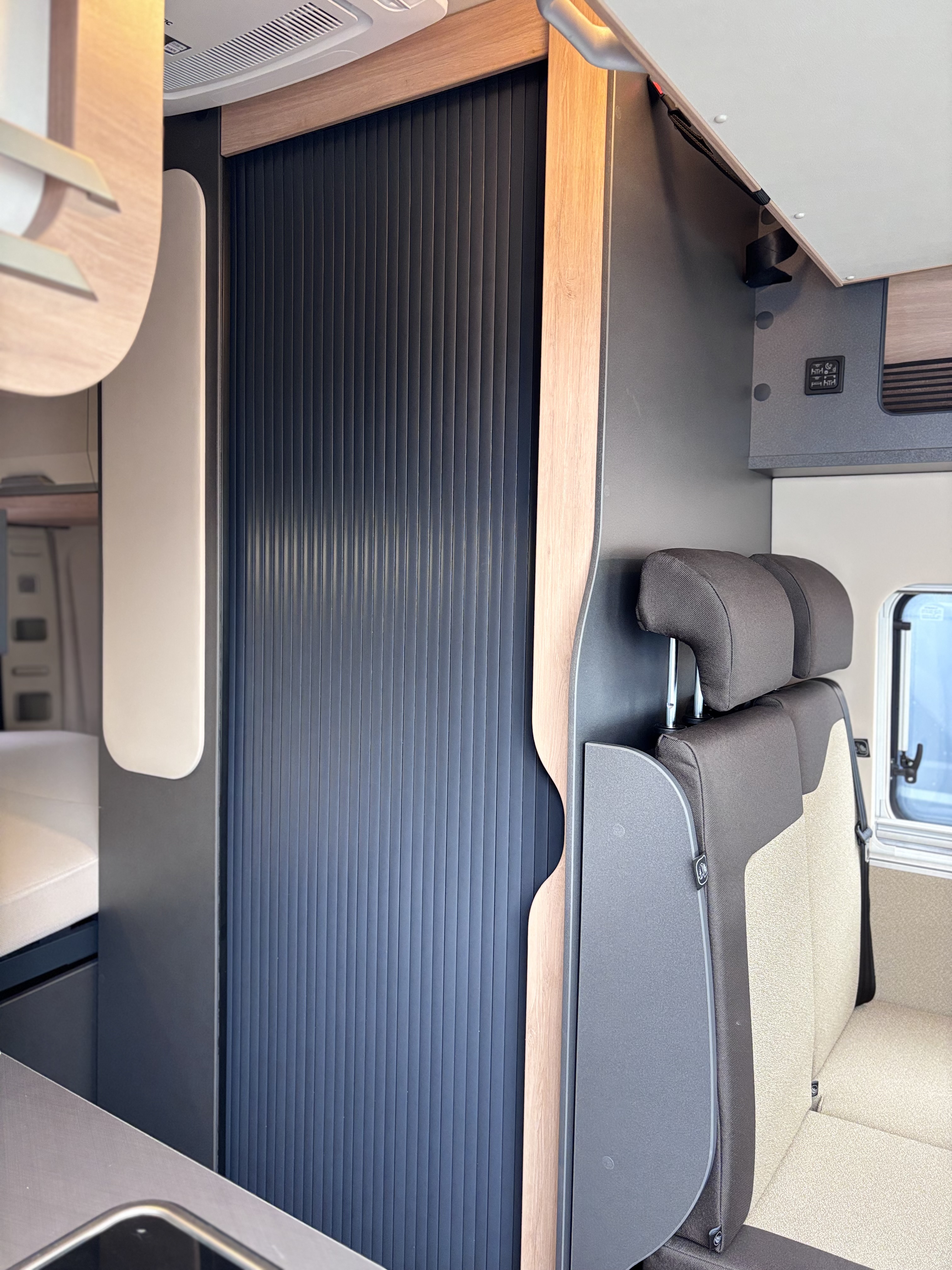 Mosogató, 84 L-es kompresszoros hűtő 7,5 L-es fagyóval, 2 égős főzőlap elektromos gyújtással, EvoPore HRC matrac, térelválasztó függöny, gardrób szekrény, konyhai munkapult hosszabbítás, szúnyoghálós ajtó, panoráma tetőablak, kombirolók, forgatható falas fürdőszoba, Thetford forgatható kazettás WC, fürdőszobai szellőző, mosdófülke beépített bio-Wc-vel és zuhanyzóval, Truma Combi 4 D dízel fűtés, 12 V-os körfűtés, 102 L-es tisztavíztartály, 90 L-es szennyvíztartály, hideg-meleg vízrendszer, hőszigetelt vízvezetékek, 95 Ah lakótér fedélzeti akkumulátor a lakótérben automata töltésvezérléssel, LED belső hangulatvilágítás