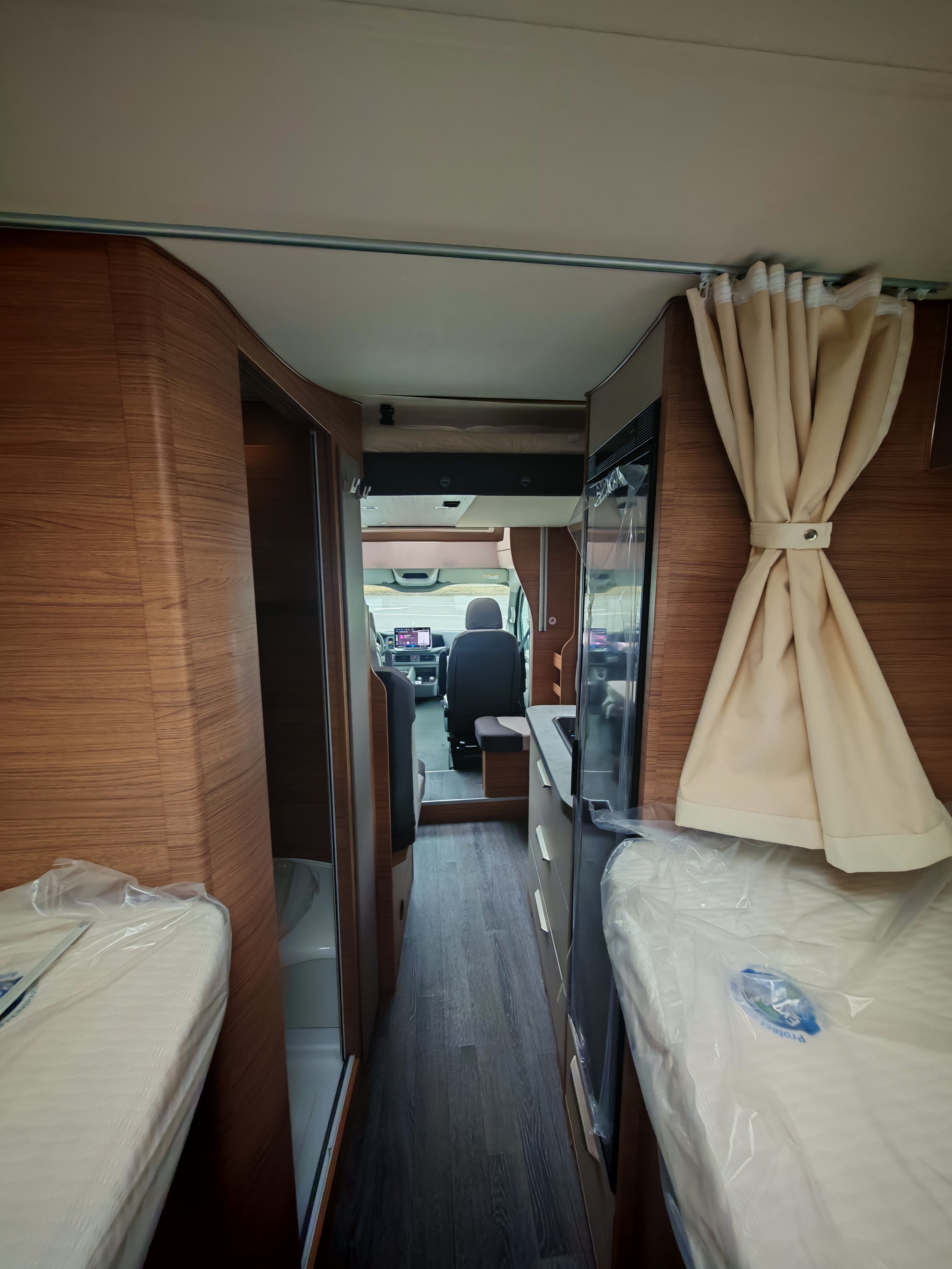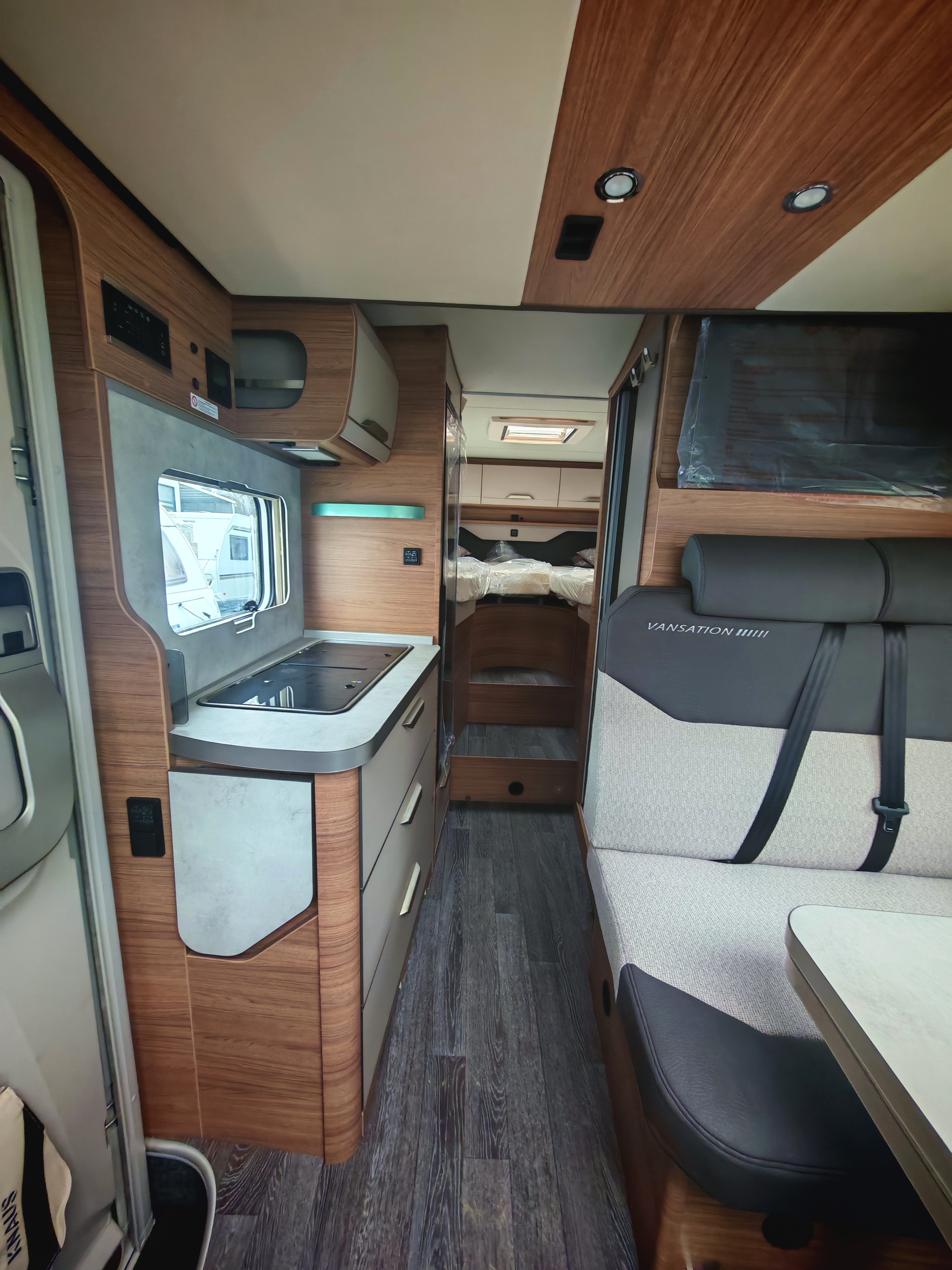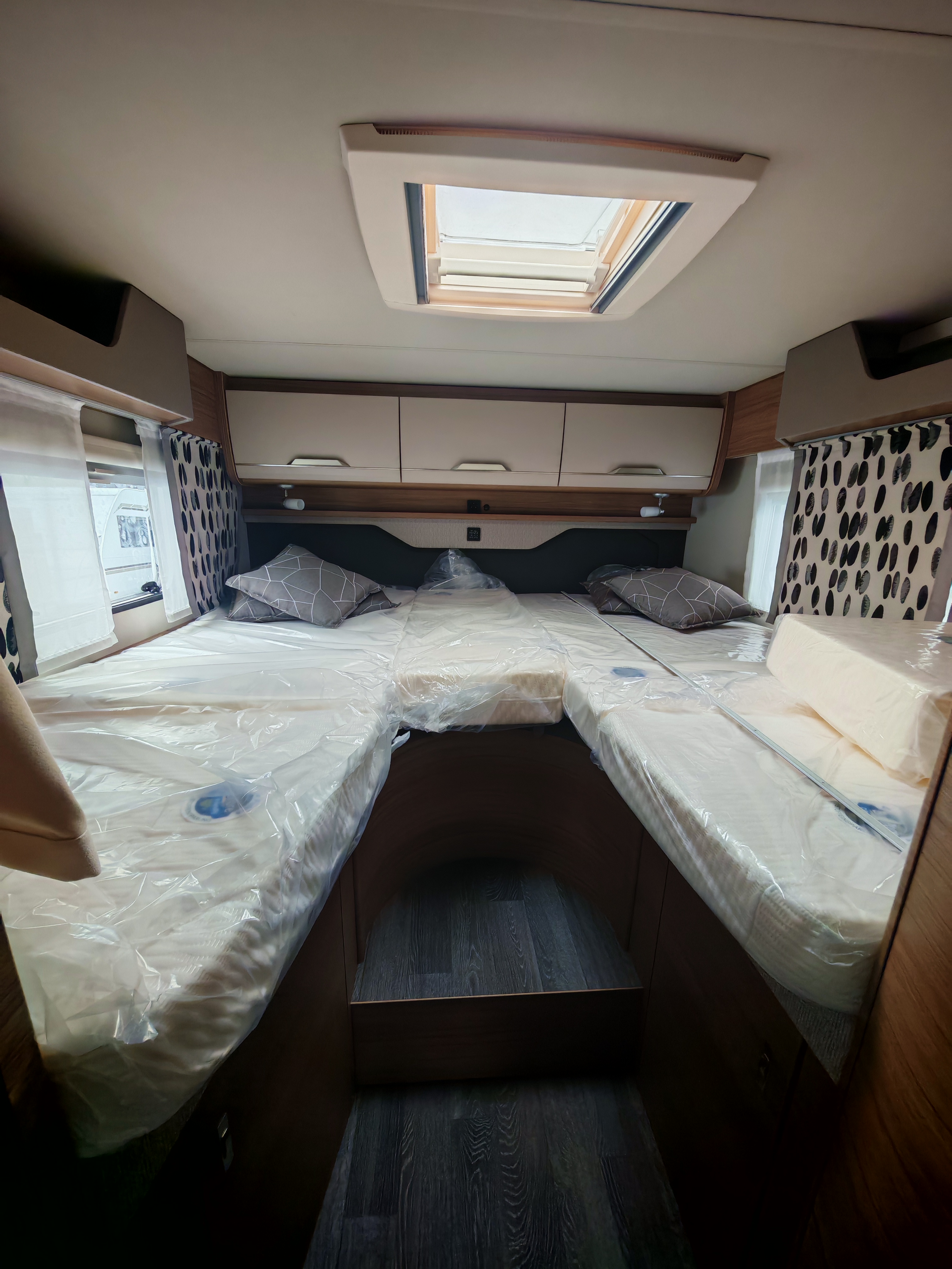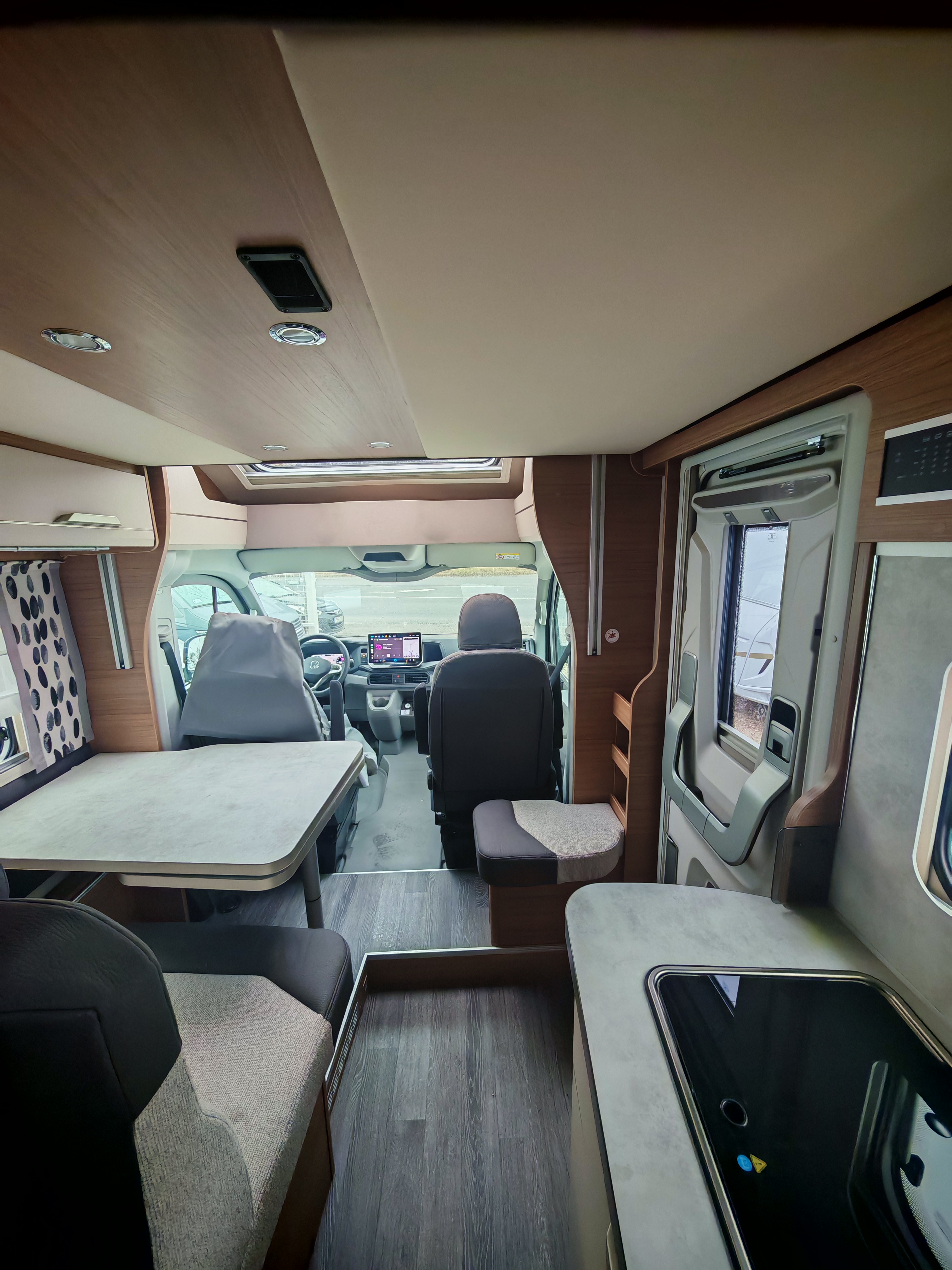 mosogató, 90 literes hűtő, 3 égőfejes tűzhely, kihajtható konyhai munkapult hosszabbítás, Truma iNet-System központi vezérlő egység, 100l beépített víztartály, 75l szennyvíztartály, mosdófülke beépített bio-Wc-vel és zuhanyzóval, ledes belső hangulatvilágítás, akasztós szekrény, olvasólámpa, kombirolók, szúnyoghálós ajtó, hátsó panoráma tetőablak, tetőklíma, gáz combi kazán