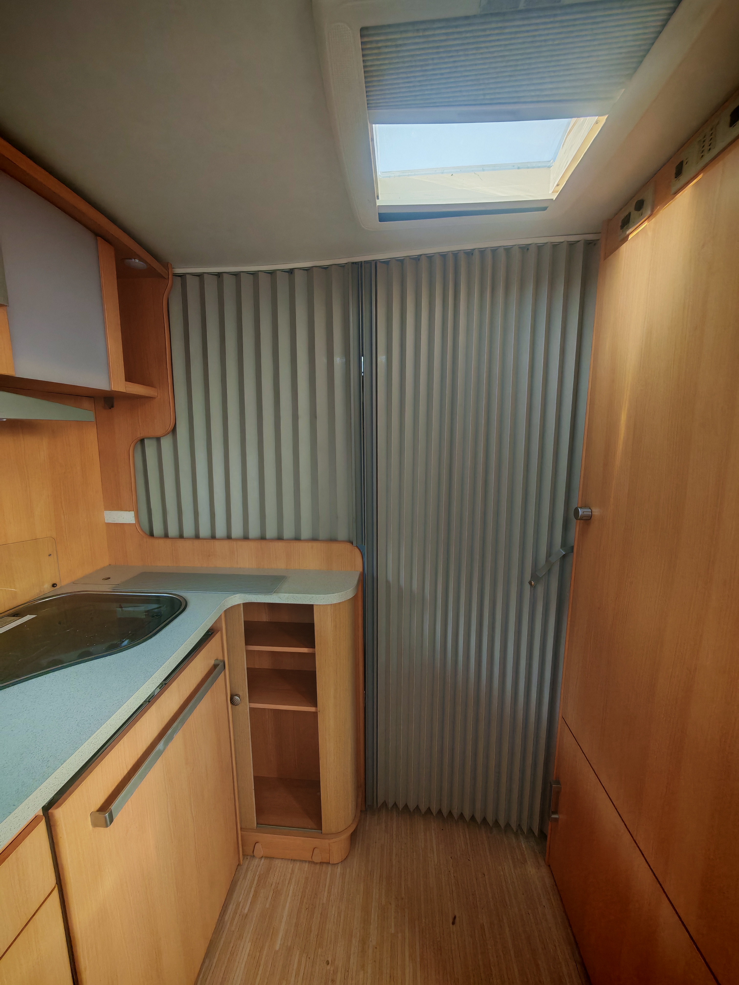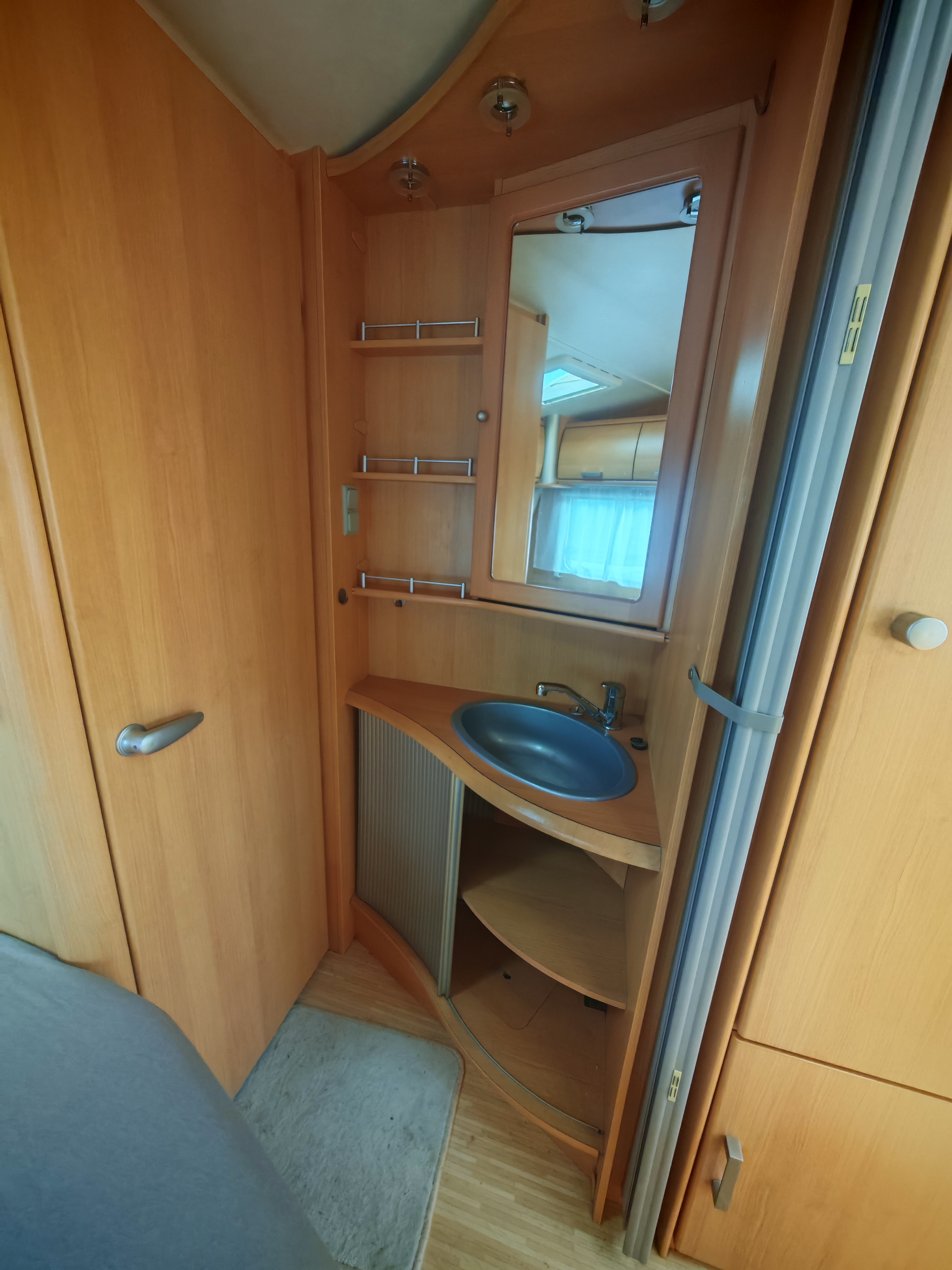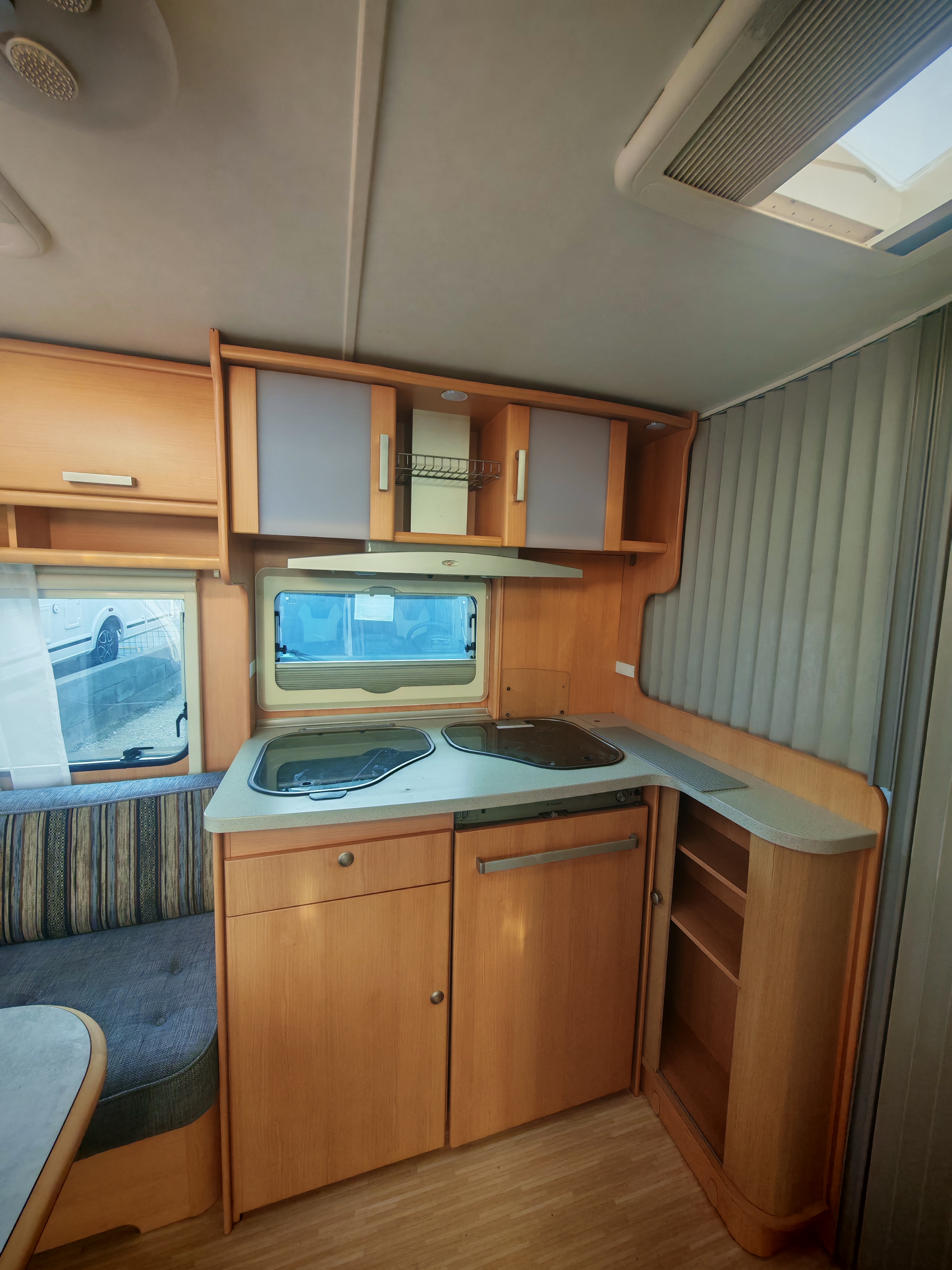 Fekvőhelyek száma: 4 fő, mosogató, hűtő, 3 égőfejes gáztűzhely, mosdófülke beépített bio-Wc-vel, kombiroló, olvasólámpa, körülés, térelválasztó, hideg-melegvíz rendszer, tisztavíztartály,  szennyvíztartály, Alde fagyálló folyadékfűtéses rendszer, vízszint jelző, szúnyoghálós ajtó, kombiroló, gardróbszekrény, panoráma tetőablak, olvasó lámpa, 12 V rendszer, szagelszívó