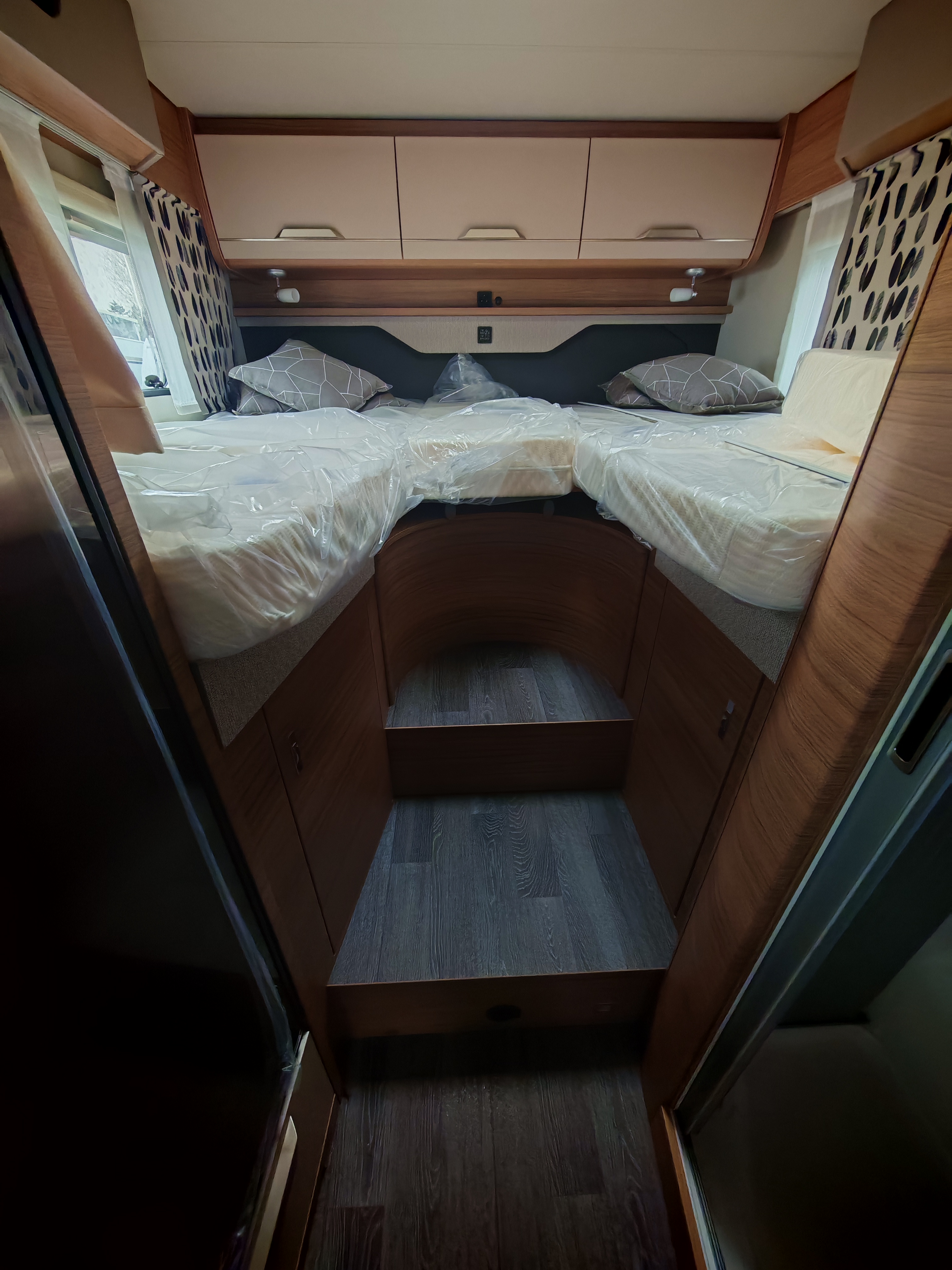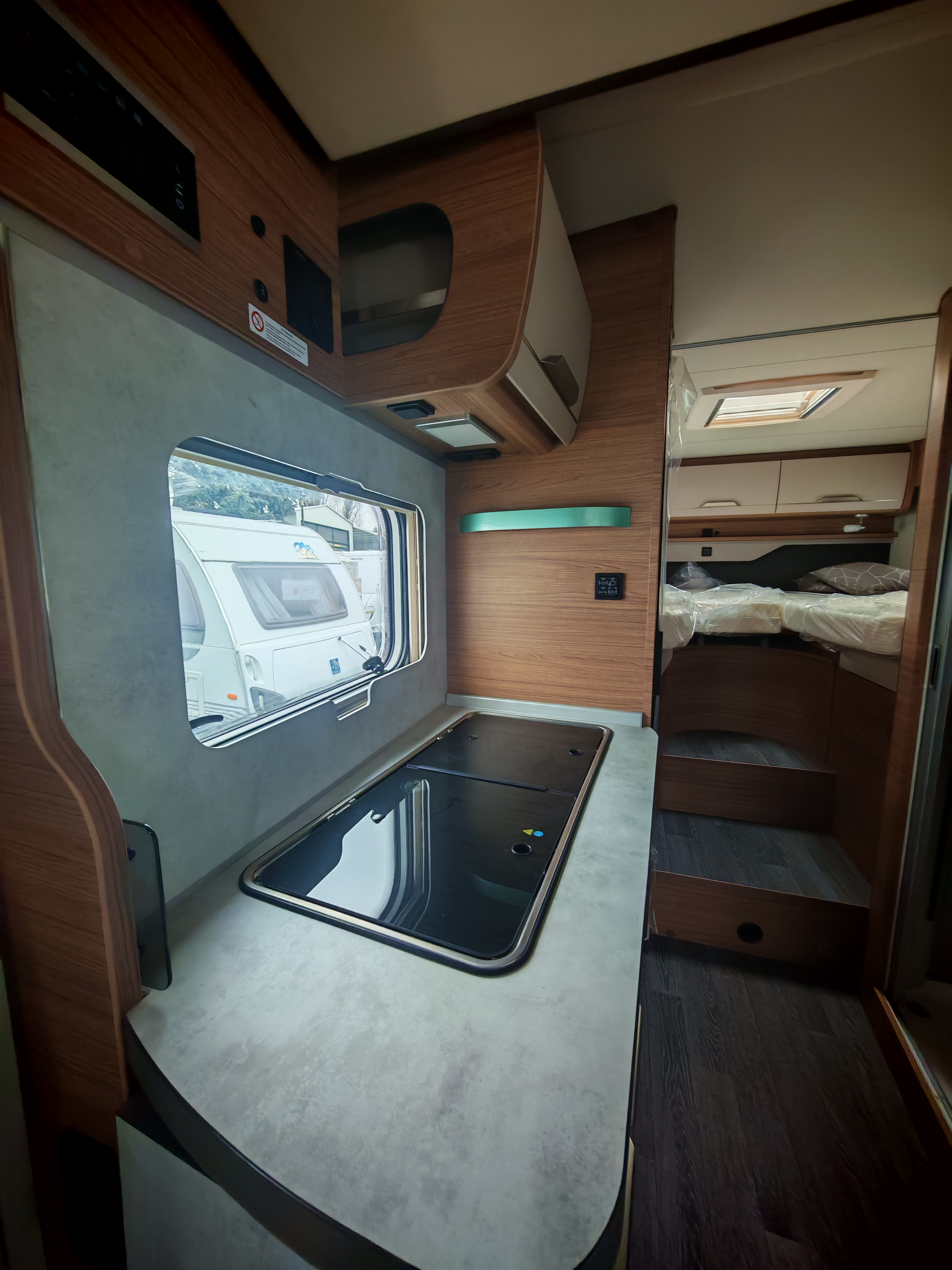 mosogató, 90 literes hűtő, 3 égőfejes tűzhely, kihajtható konyhai munkapult hosszabbítás, Truma iNet-System központi vezérlő egység, 100l beépített víztartály, 75l szennyvíztartály, mosdófülke beépített bio-Wc-vel és zuhanyzóval, ledes belső hangulatvilágítás, akasztós szekrény, olvasólámpa, kombirolók, szúnyoghálós ajtó, hátsó panoráma tetőablak, tetőklíma, gáz combi kazán
